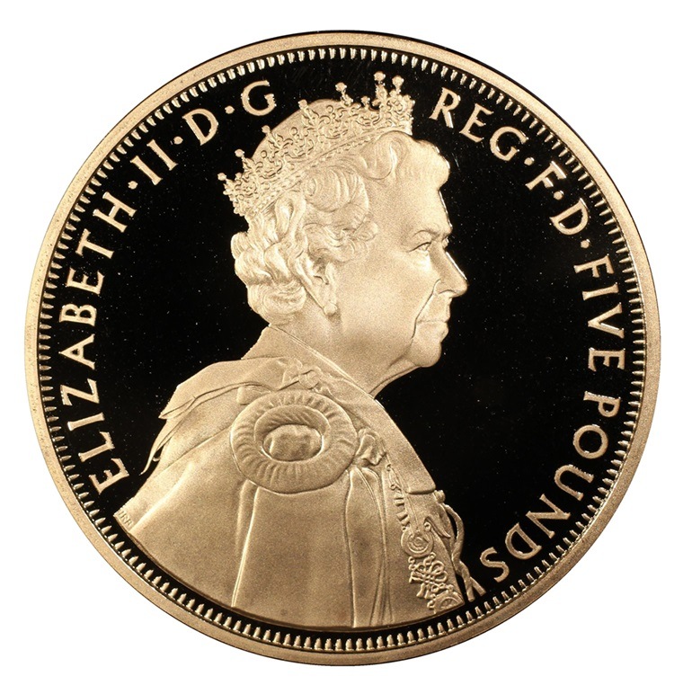 エリザベス女王即位60周年を記念して限定発行された5ポンド金貨。