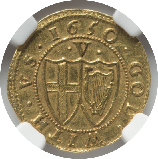 ピューリタン革命後の数年間のみ鋳造された鑑定枚数5枚の激レアコインです。
