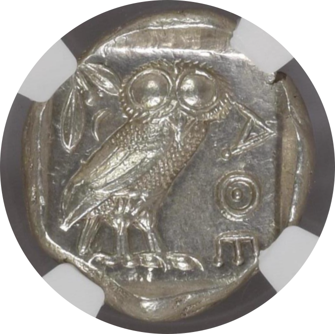 絶大なる人気を誇る古代ギリシャの”フクロウ銀貨"になります。