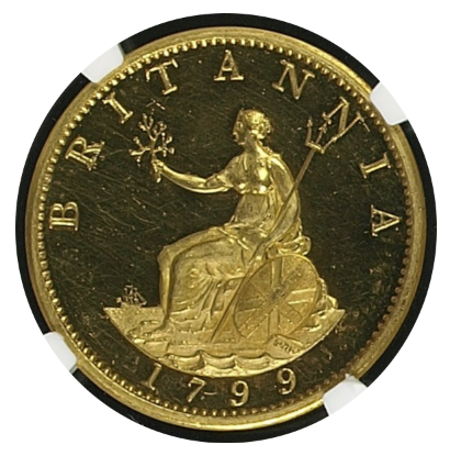 【PR63 ULTRA CAMEO】1799年 イギリス ジョージ3世 ハーフペニー金メッキ銅貨