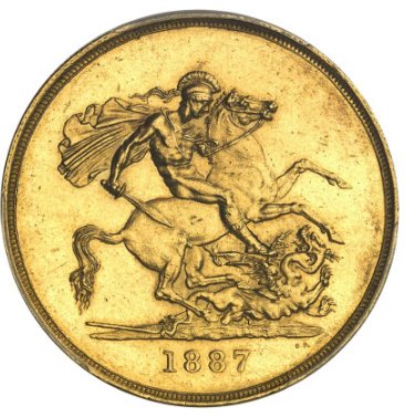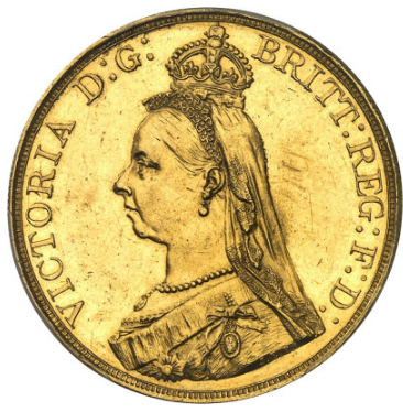 【MS61】1887年 イギリス ヴィクトリア女王 ジュビリーヘッド 5ポンド金貨