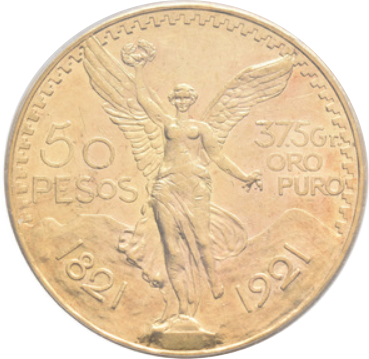 【MS61】1921年 メキシコ 勝利の女神 50ペソ金貨