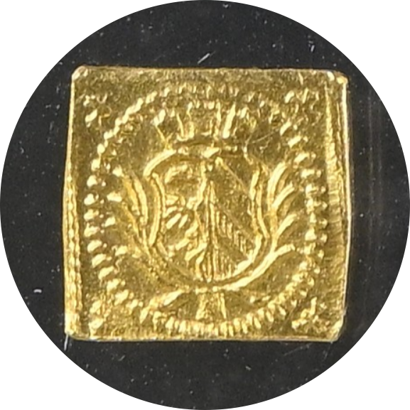 本品は、そうした時代背景のもと、角型クリッペ(Klippe)として特別に鋳造されたダカット金貨です。通常の円形金貨とは異なり、四角形の地金から切り出されるクリッペは、当時、緊急通貨や祝祭・記念・贈答用といった限られた用途にのみ用いられました。そのため現存数は多くなく、今日では世界的にも高いコレクション性を備えた存在として評価されています。
