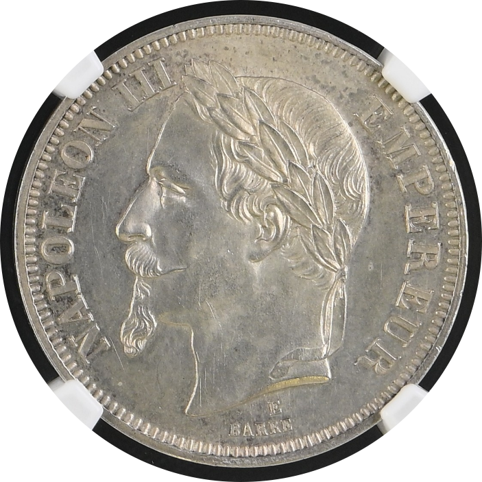 フランスコインの中には「BARRE」の名が多く彫刻されていますが、中でも一番有名なコインがナポレオン3世をモチーフにしたコインで、世界中で絶大な人気を誇ります。